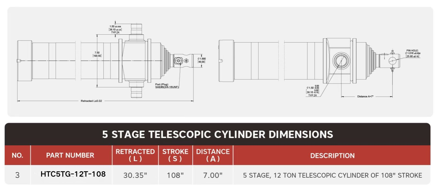 "HTC5TG-12T-108"، 5 مراحل، 12 طن من 108 بوصة أسطوانة تلسكوبية