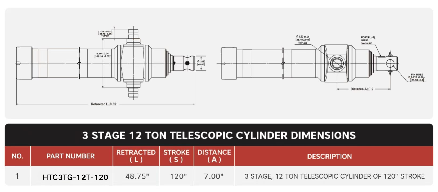 "HTC3TG-12T-120"، 3 مراحل، 12 طن من أسطوانات تلسكوبية 120 بوصة