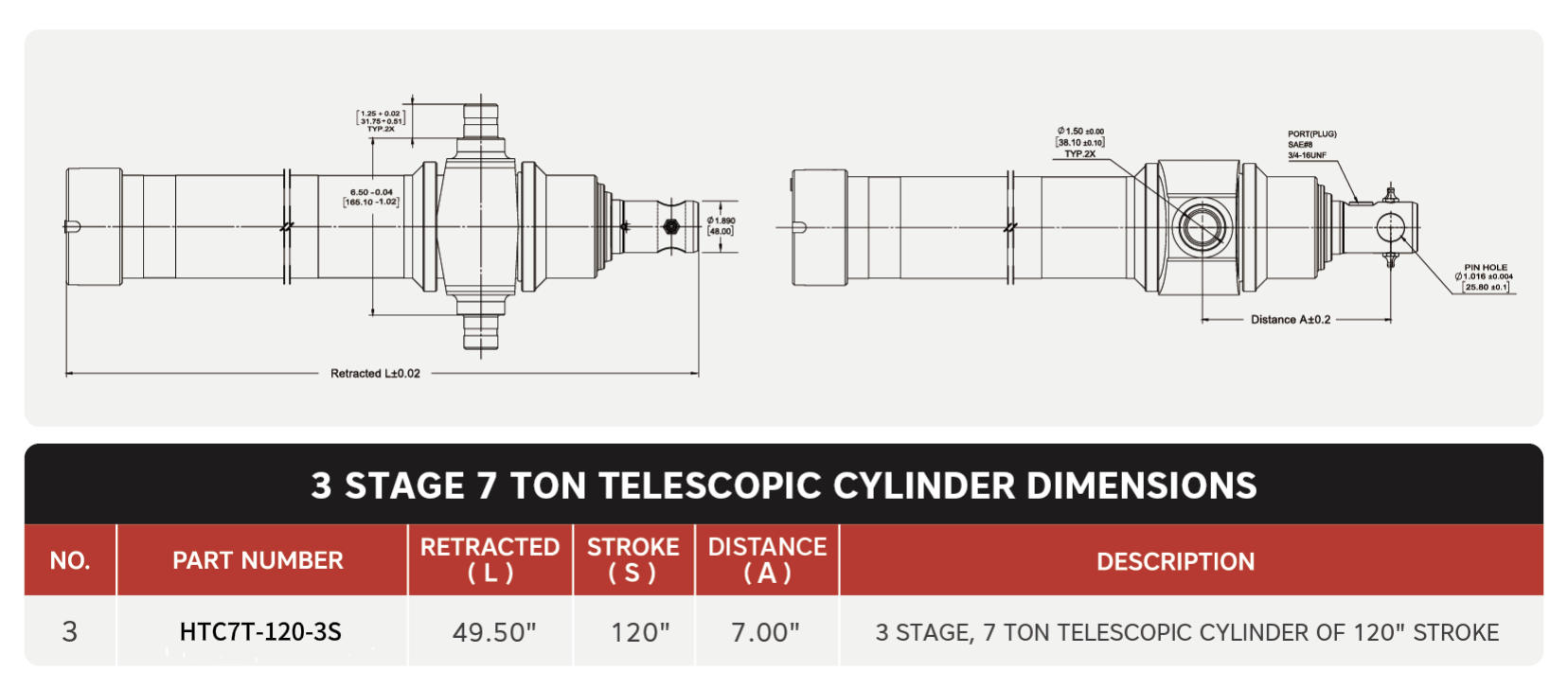 "HTC3TG-7T-120"، 3 مراحل، 7 طن من أسطوانات تلسكوبية 120 بوصة